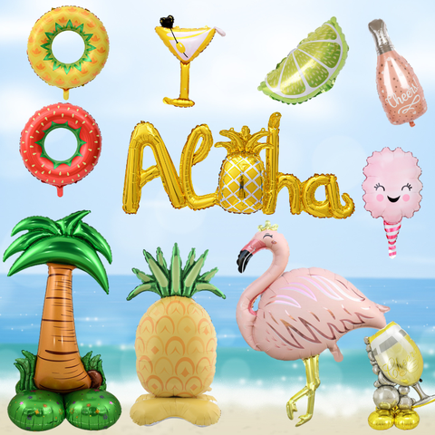 Globos hawaianos de papel de aluminio para fiesta temática de playa de verano con árboles de coco de frutas tropicales cóctel de fresa Lima