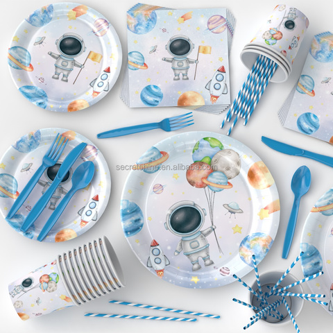 Vendita calda astronauta astronauta razzi usa e getta stoviglie Set festa di compleanno per bambini decorazione della tavola compresi piatti tovaglioli