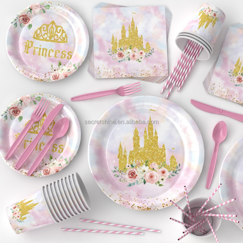 Il Set di stoviglie usa e getta per la festa di compleanno della bambina con corona del castello della principessa include piatti di carta posate alla scuola