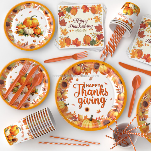 Il Set di stoviglie per la festa del raccolto del ringraziamento include piatti di carta usa e getta posate tovaglia-vendita calda per l'estero