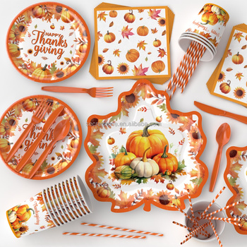 Venda quente Ação De Graças Halloween Festival Partido Talheres Set Abóboras Maples Colheita Tema Placas Descartáveis Copos Talheres